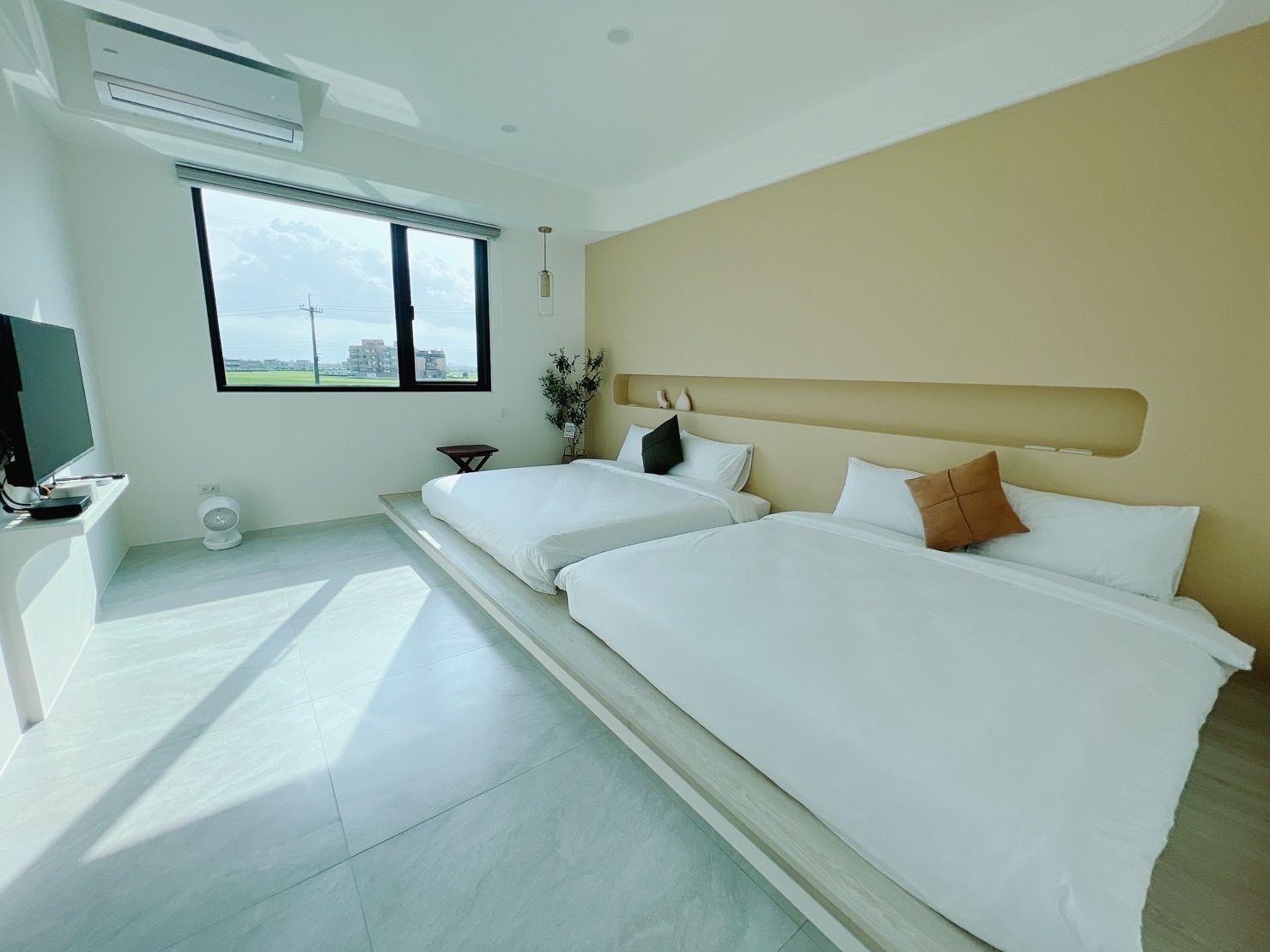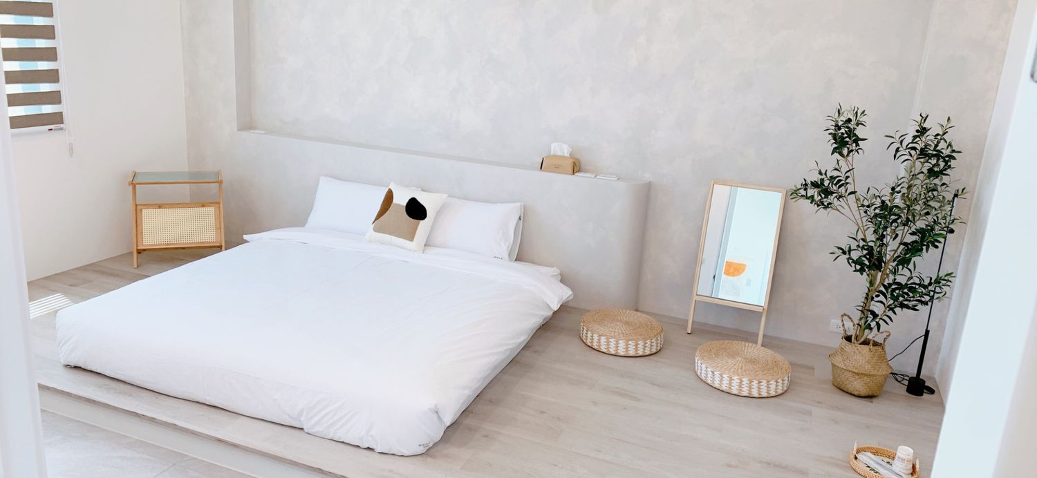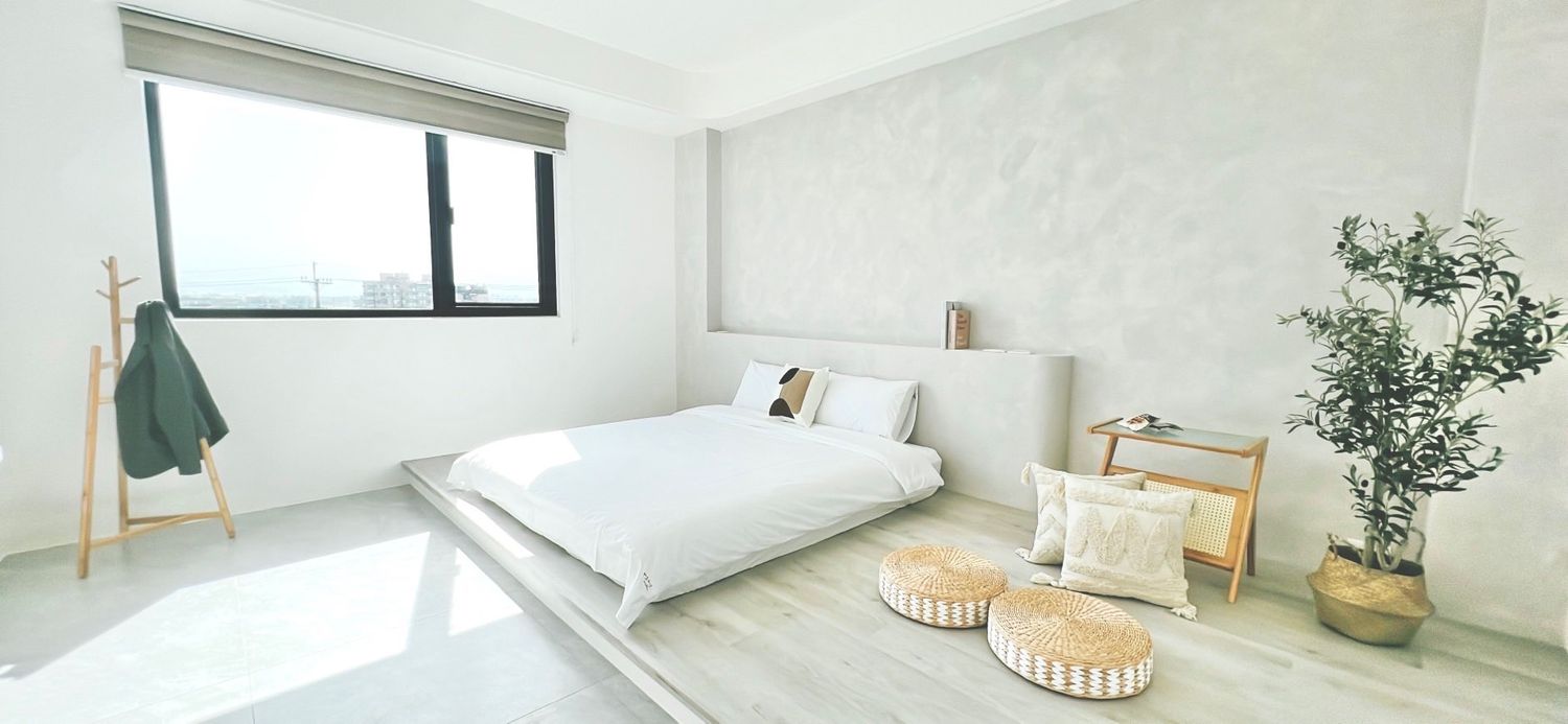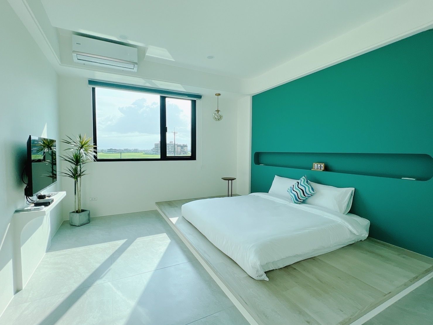 獨立大床設計,亮眼的綠松牆面與自然採光,打造清新舒適的休息空間。